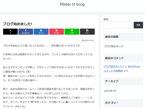 最初の投稿をしてみたが、殺風景です~