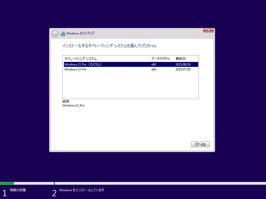 少し前のWindows 11 23H2のisoを利用することで、このエラーを回避して最新のWindows 24H2(10.0.26100.4946)が収録されたカスタムイメージをインストールすることができます。