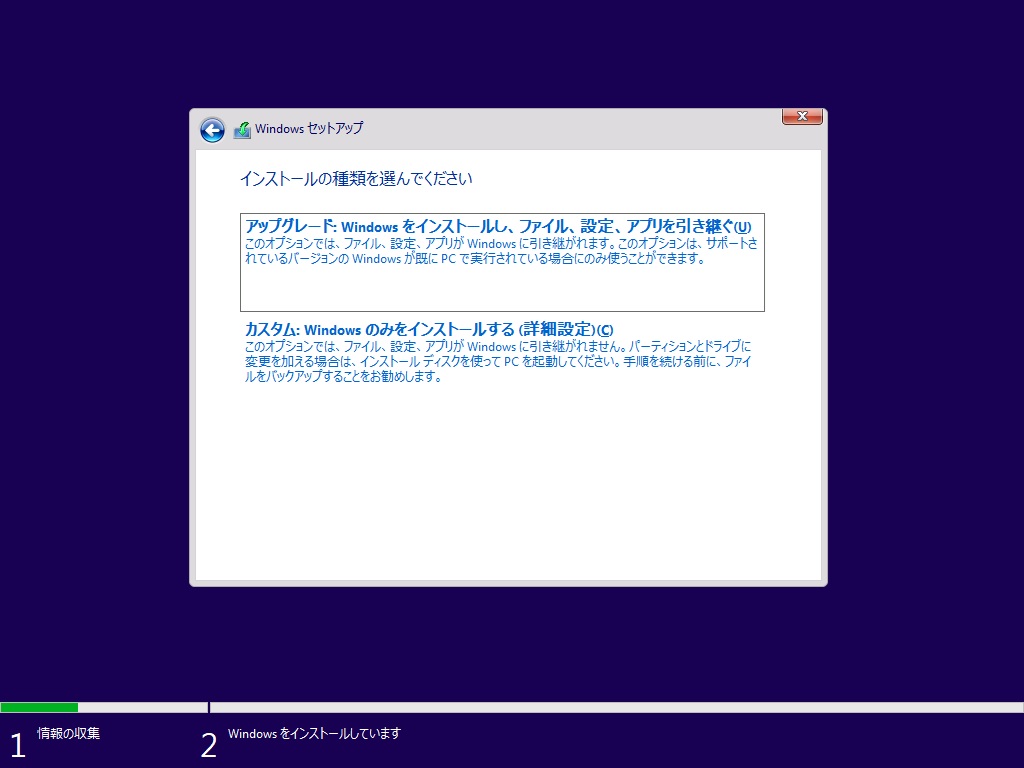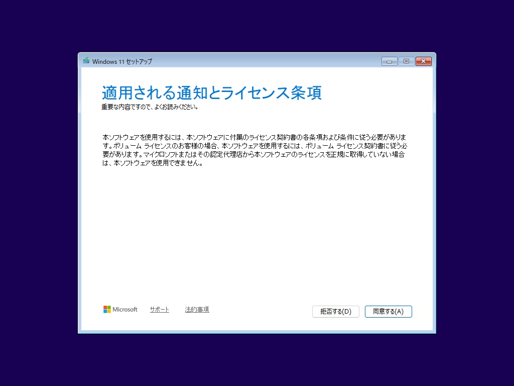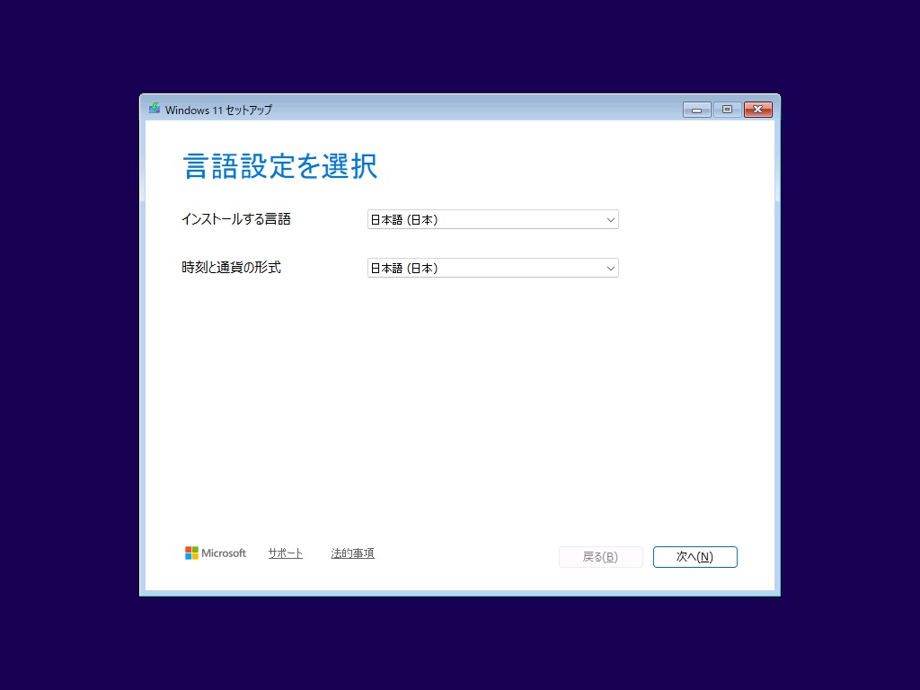 インストールが適切に進むと(エラーに遭遇しなければ)、OOBEのセットアップが始まります。これ以降はどちらのインストーラーを用いても同じです。(インストーラーイメージに依存します)