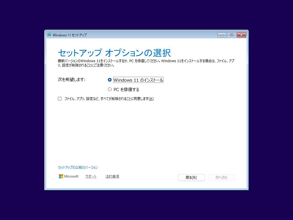 Windows 11 24H2のisoでインストール作業をした時に『Windows 11 のインストールに失敗しました』のエラーに遭遇しました。